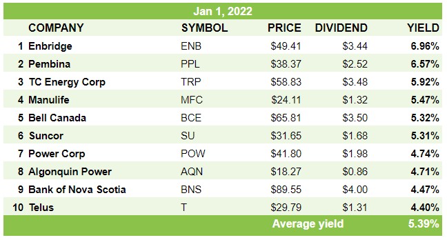 לפי כללי המודל, רק חברה אחת (EMA) Emera, שתשואת הדיבידנד שלה הייתה הנמוכה ביותר (4.19%) עזבה, ובמקומה נכנסה חברת הנפט (SU) Suncor, שתשואת הדיבידנד שלה גבוהה בהרבה (5.31%).