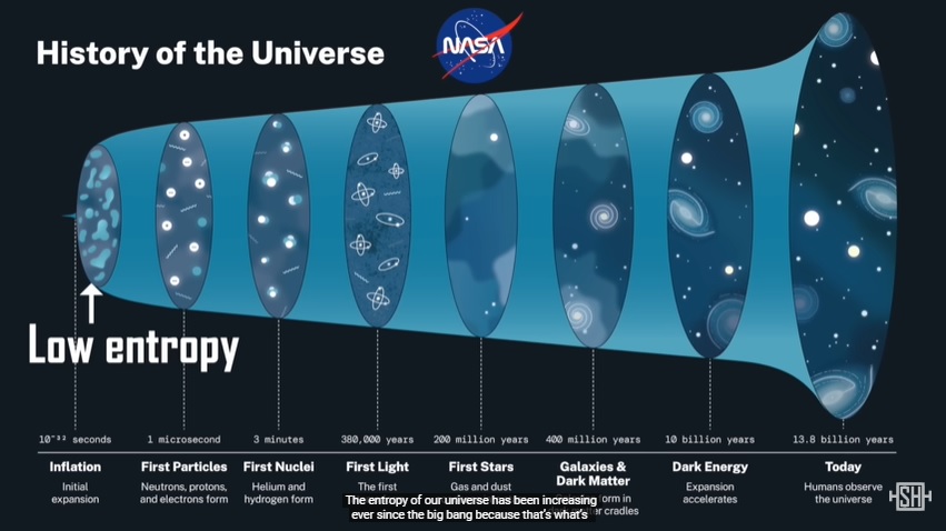 החוק השני של התרמודינמיקה מראה שגם תיאורטית לא ניתן להקטין אנטרופיה בלי השקעה תמידית של אנרגיה ובאופן מעשי האנטרופיה גדלה עם הזמן – תמיד.