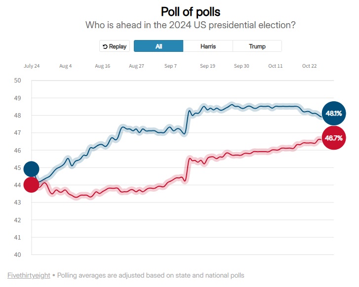 בגלל שיטת האלקטורים הדפוקה שלהם ההבדל בגרפים לא מספיק גדול בשביל שהריס תנצח.