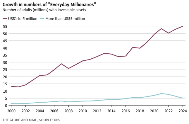ההגדרה "מיהו מיליונר" חדה וברורה: אדם שסך נכסיו הפנויים להשקעה – לא כולל בית המגורים – עולה על מיליון דולר אמריקאי. על פי דו"ח שהתפרסם לאחרונה מטעם בנק UBS, מספר המיליונרים בעולם עומד היום על כ- 55 מיליון, מתוכם 24 מיליון אזרחי ארה"ב ושני מיליון אזרחי קנדה.