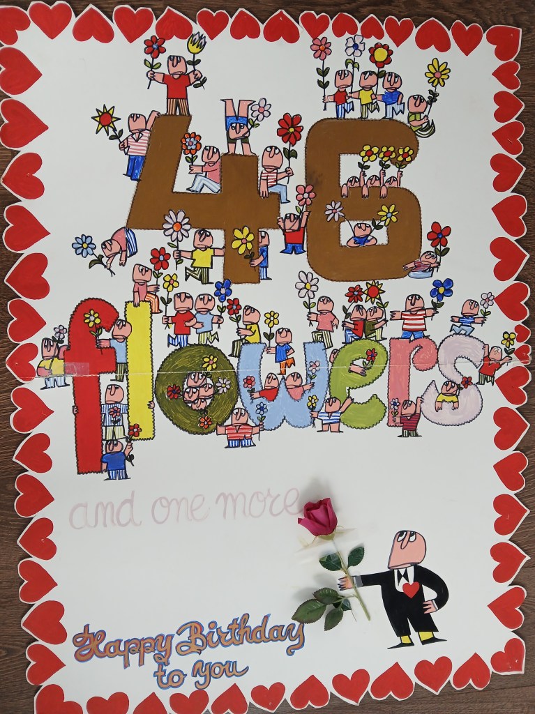 בתמונה, שגובהה כמעט בגובה של אנה, הוא צייר 46 פרחים שמוחזקים על ידי אנשים קטנים בני דמותו, ועוד פרח אמיתי שהוא מחזיק, לשנה הבאה. למרות כל הלבבות במסגרת התמונה, הוא לא שכח להוסיף לב אדום לאווטאר, שמופיע גם במאות פתקי אהבה לאנה.